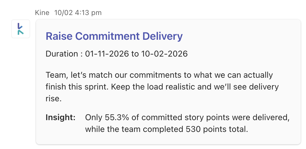 Nudges can be sent directly to Microsoft Teams channels to keep squads aligned and informed.